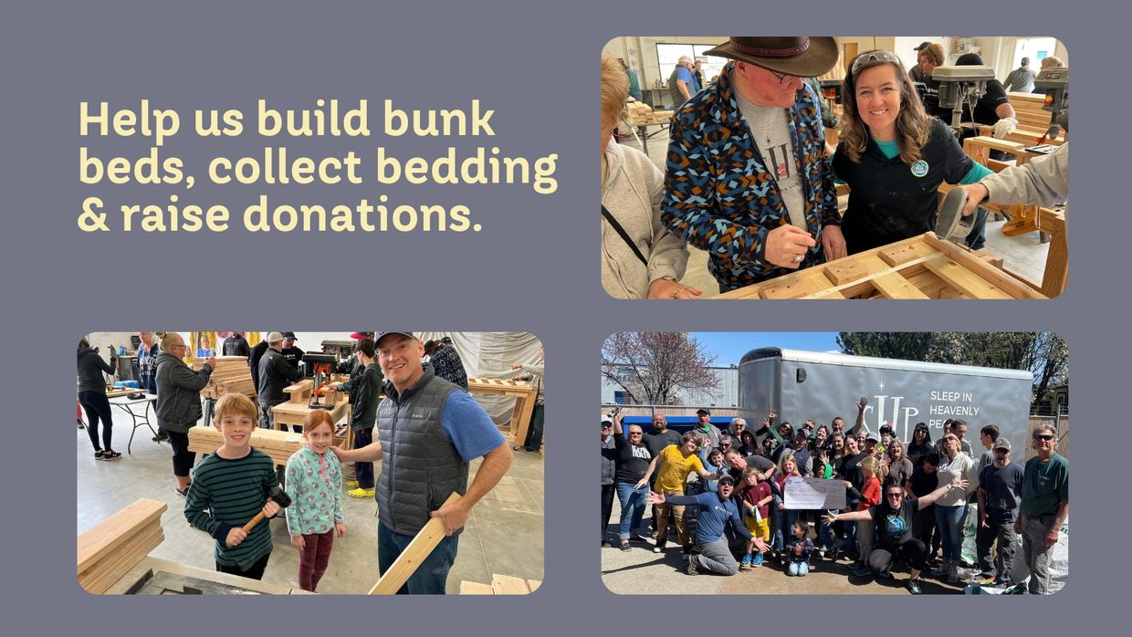Join us in building bunk beds, collecting bedding, and raising donations to benefit Treasure Valley's Sleep in Heavenly Peace (SHP). Your participation will significantly impact the lives of local children who need a good night's sleep.